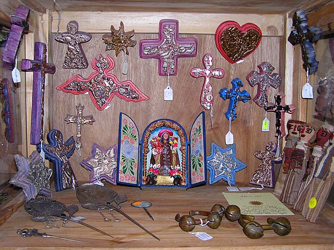 More Ornaments and Decorations Wood crosses and angels with milagros from Mexico Traditional shawl pins (tupus) from Peru Yoruba bronze money bracelets (approx. 450 years old) from Nigeria ![]() All